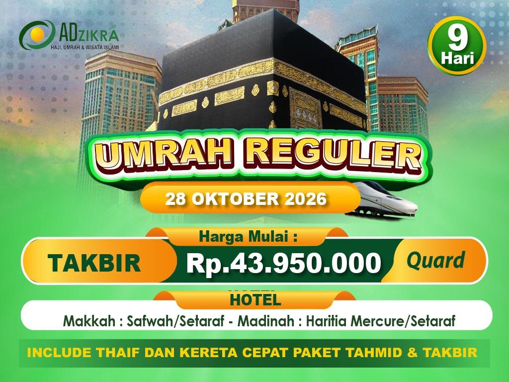 PAKET UMRAH TAKBIR 28 OKTOBER 2026 (BINTANG 5)