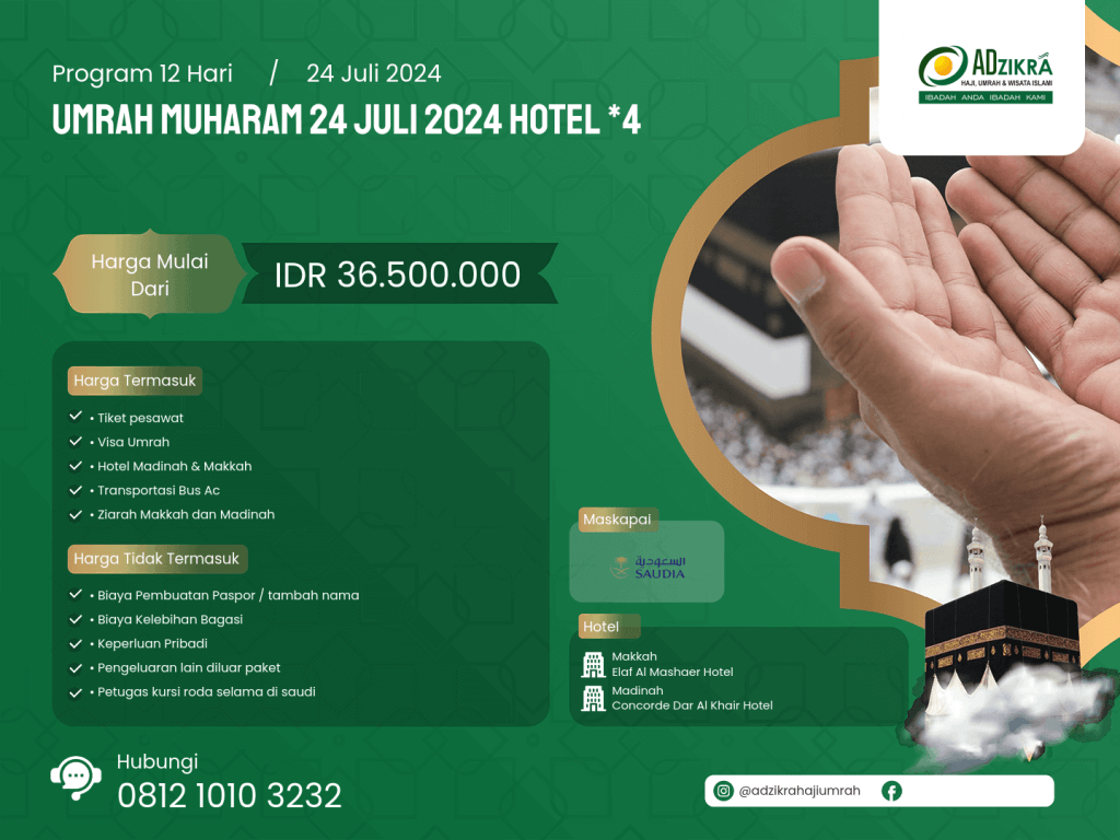 UMRAH MUHARAM 24 JULI 2024 HOTEL *4